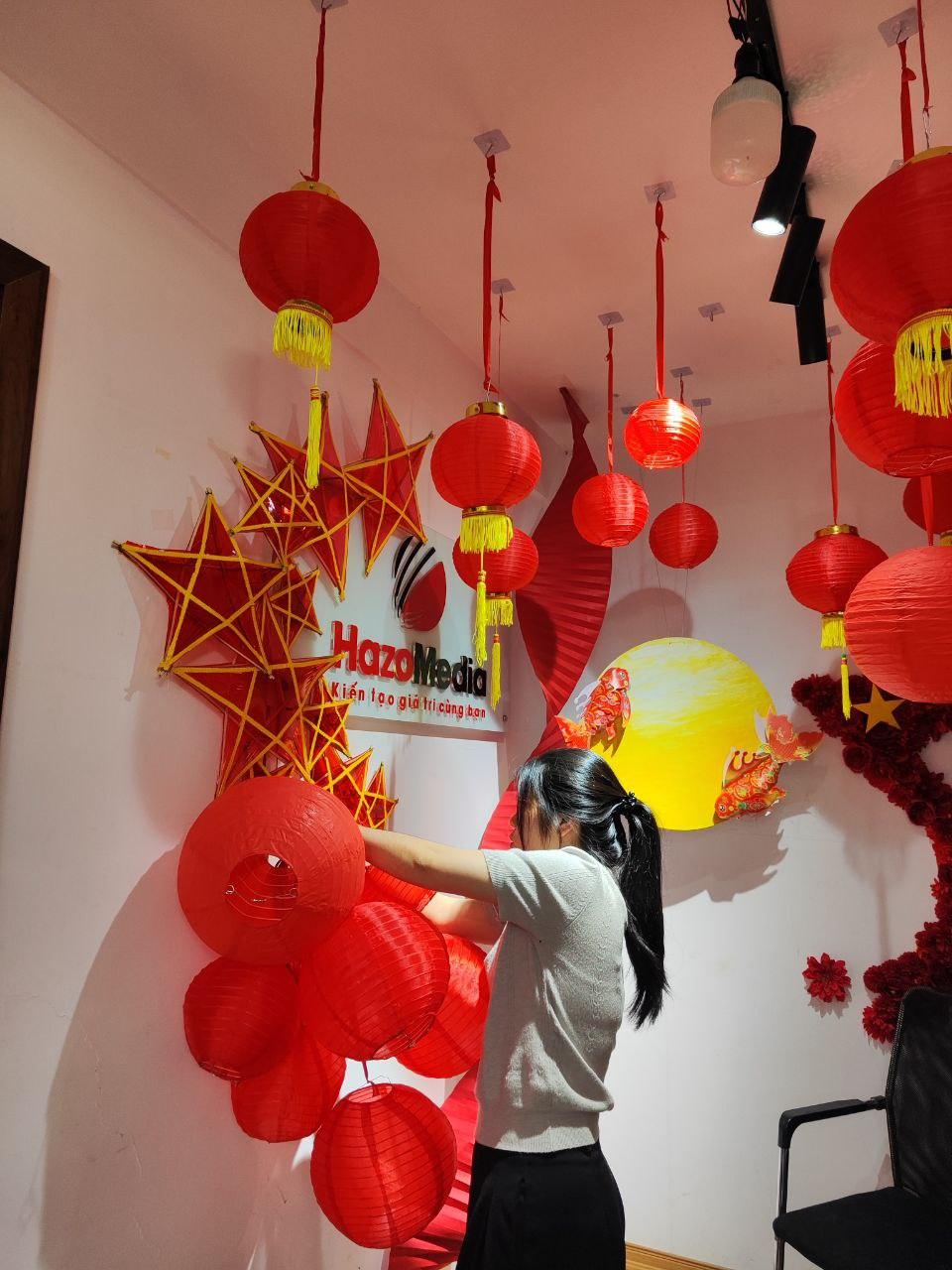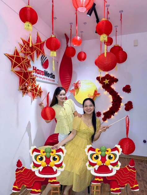 image003Hazo Media. Những chiếc đèn lồng rực rỡ được trang trí khéo léo, những chiếc đèn ông sao được gắn tỉ mỉ bên cạnh logo Hazo Media, và hình ảnh vầng trăng tròn vành vạnh tượng trung cho ngày rằm được chiếu sáng tạo thành điểm nhấn cho bức tranh Trung Thu càng thêm rực rỡ.