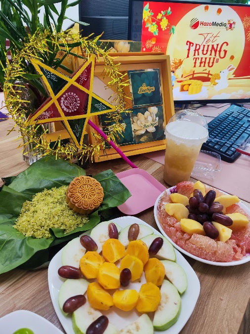 Buổi tiệc nhỏ tại Hazo Media đã diễn ra trong không khí ấm áp, rộn ràng và đầy sắc màu. Tất cả thành viên cùng nhau chụp ảnh liên hoan, trong những bộ áo quần tươm tất, rực rỡ. Không gian thêm phần tươi mới với hoa thơm, quả ngọt cùng những phần quà bánh Trung Thu được Hazo chuẩn bị gửi tặng các thành viên xinh đẹp – như một lời tri ân và sẻ chia đầy ý nghĩa.